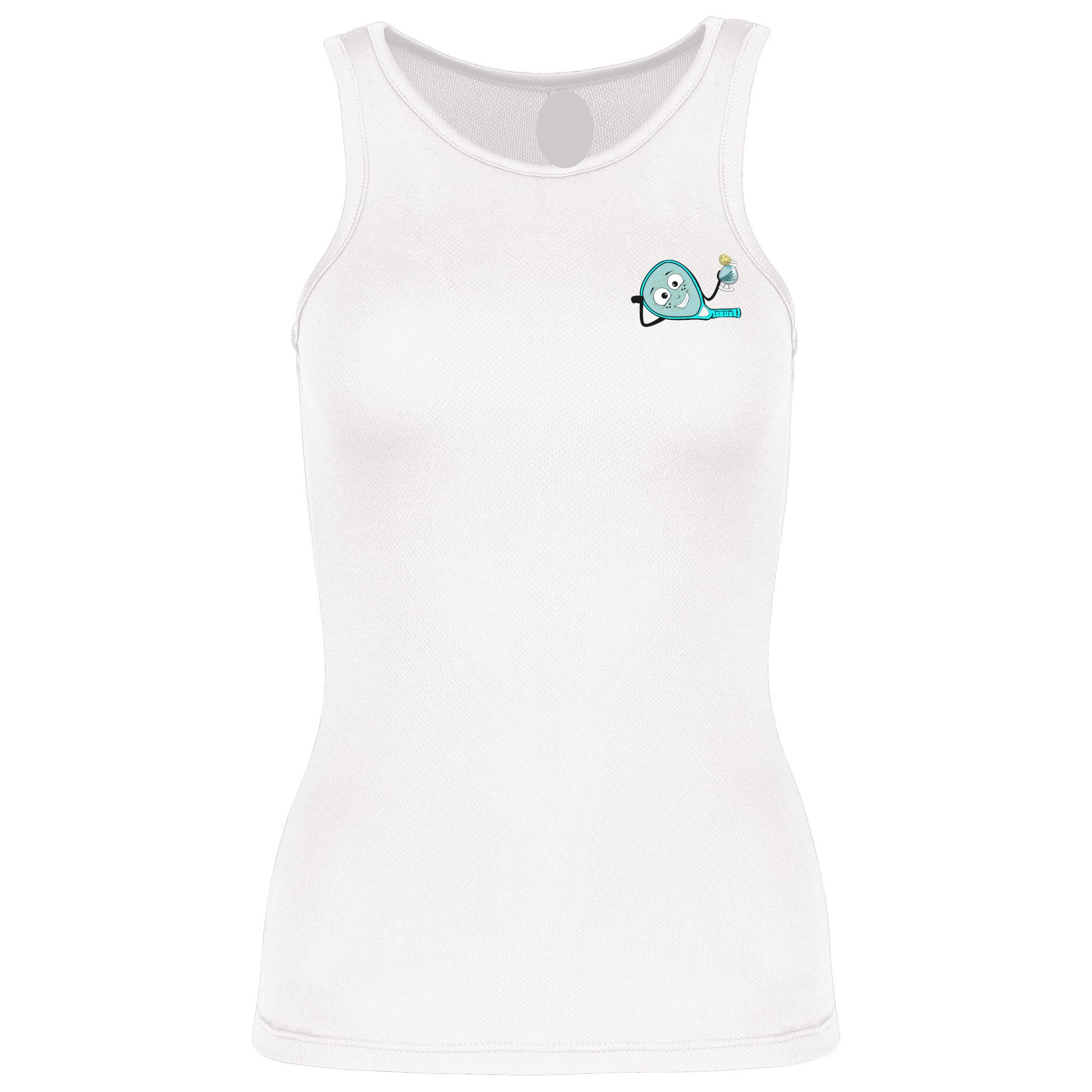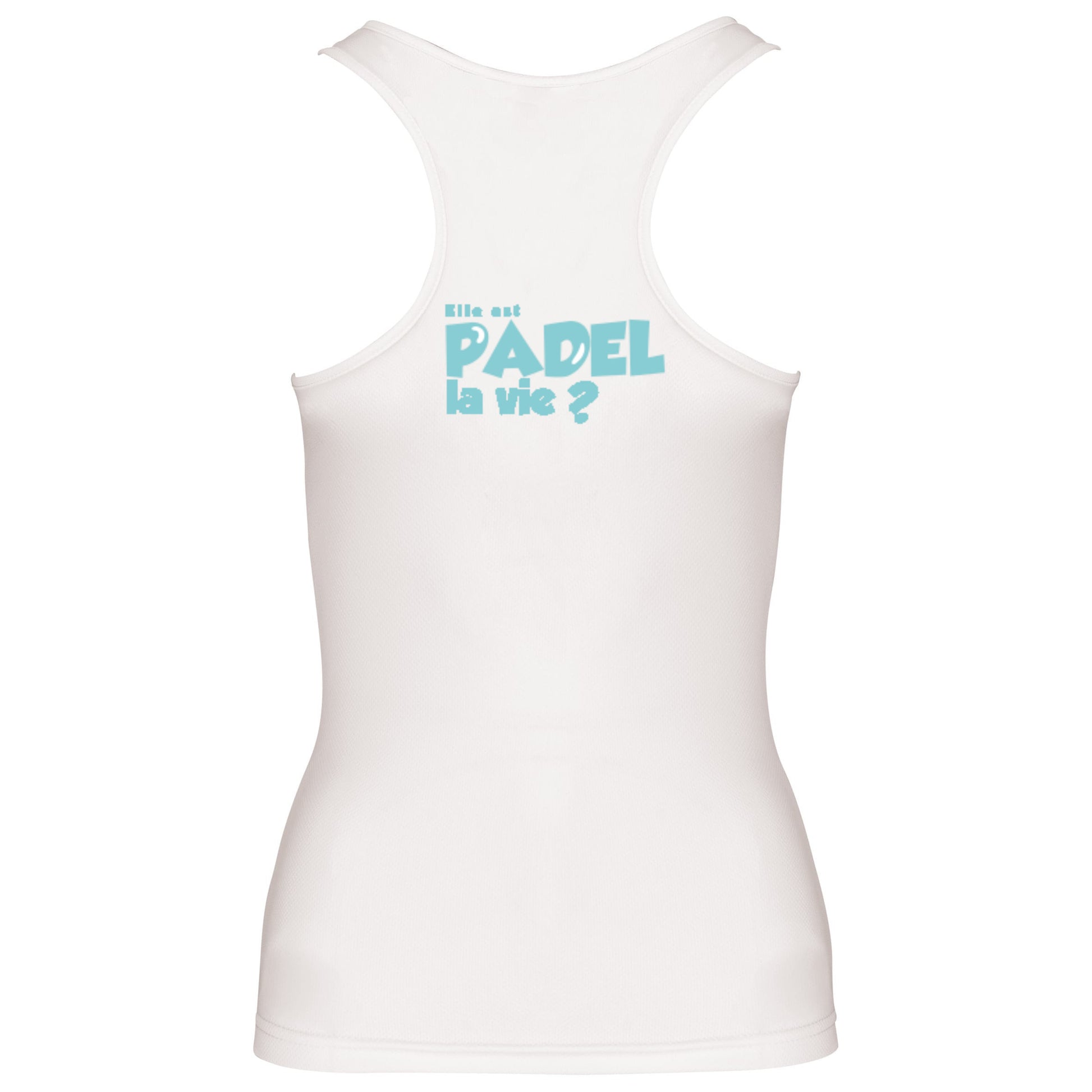 Débardeur technique 100 % polyester, léger et respirant, avec le Logo Elle est padel la vie ? côté cœur, pour partager le padel avec style et bonne humeur.