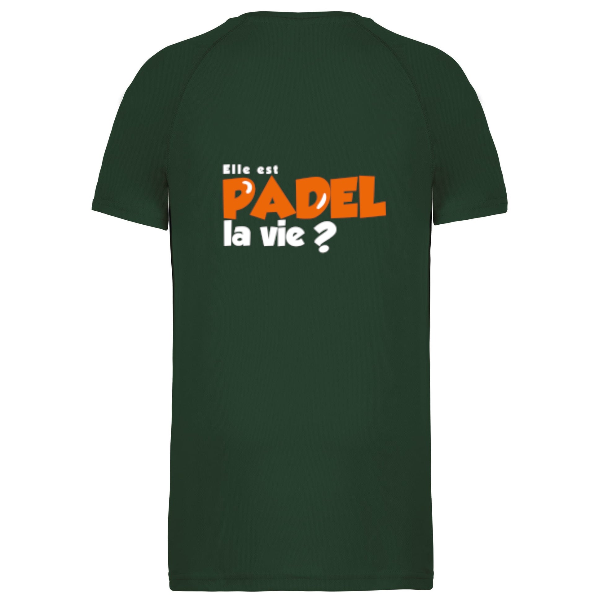 T-shirt technique 100 % polyester, léger et respirant, avec le logo Elle est padel la vie ? côté cœur, pour partager le padel avec style et bonne humeur.