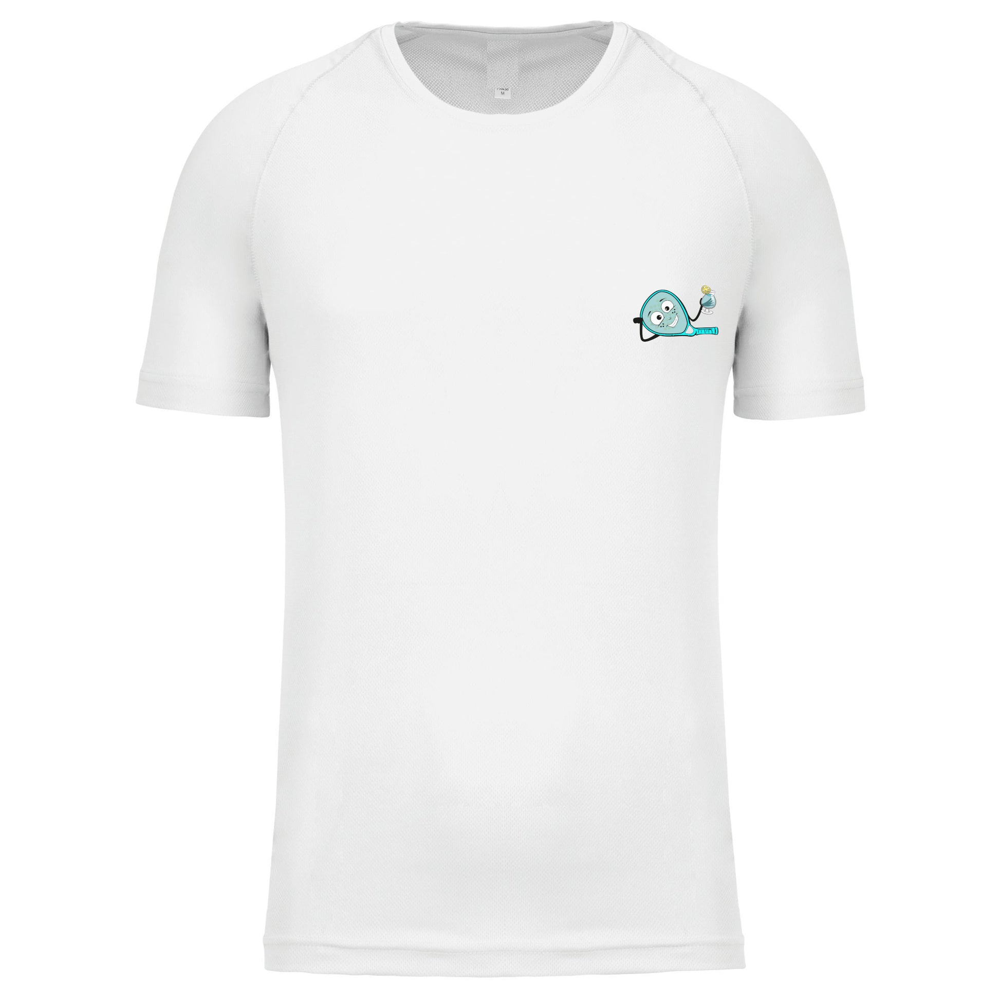 T-shirt technique 100 % polyester, léger et respirant, avec le logo Elle est padel la vie ? côté cœur, pour partager le padel avec style et bonne humeur.